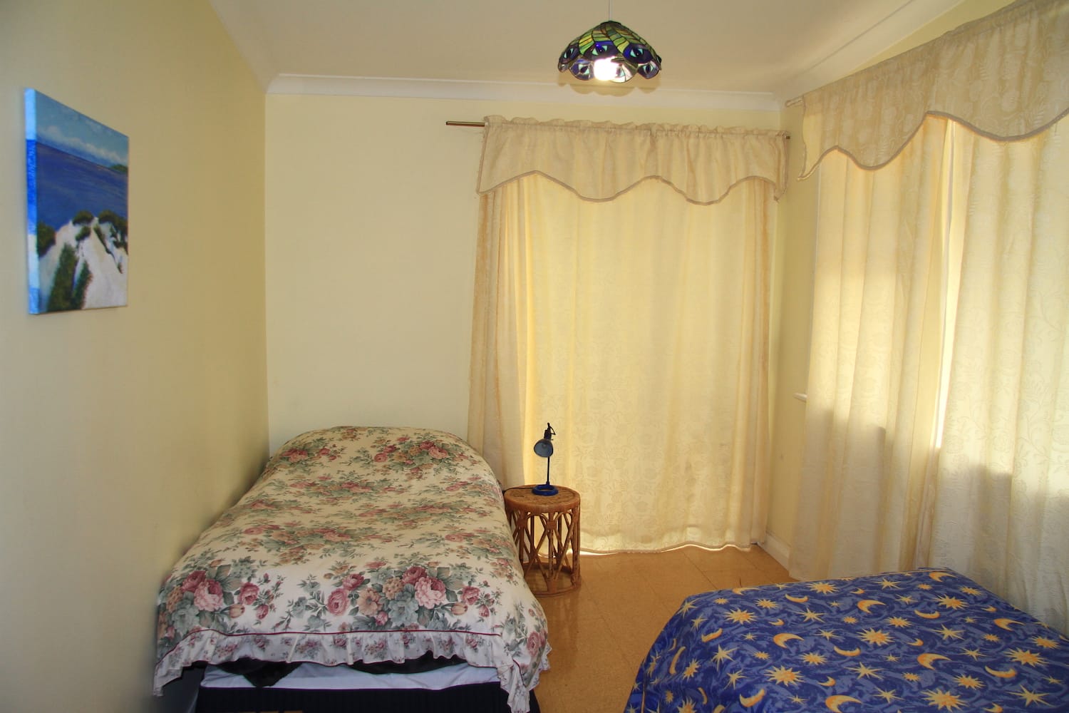 Room 5 – Two Single Beds. This room is across the hallway from the Flat so ideal for kids with their parents in the Flat with Ensuite.