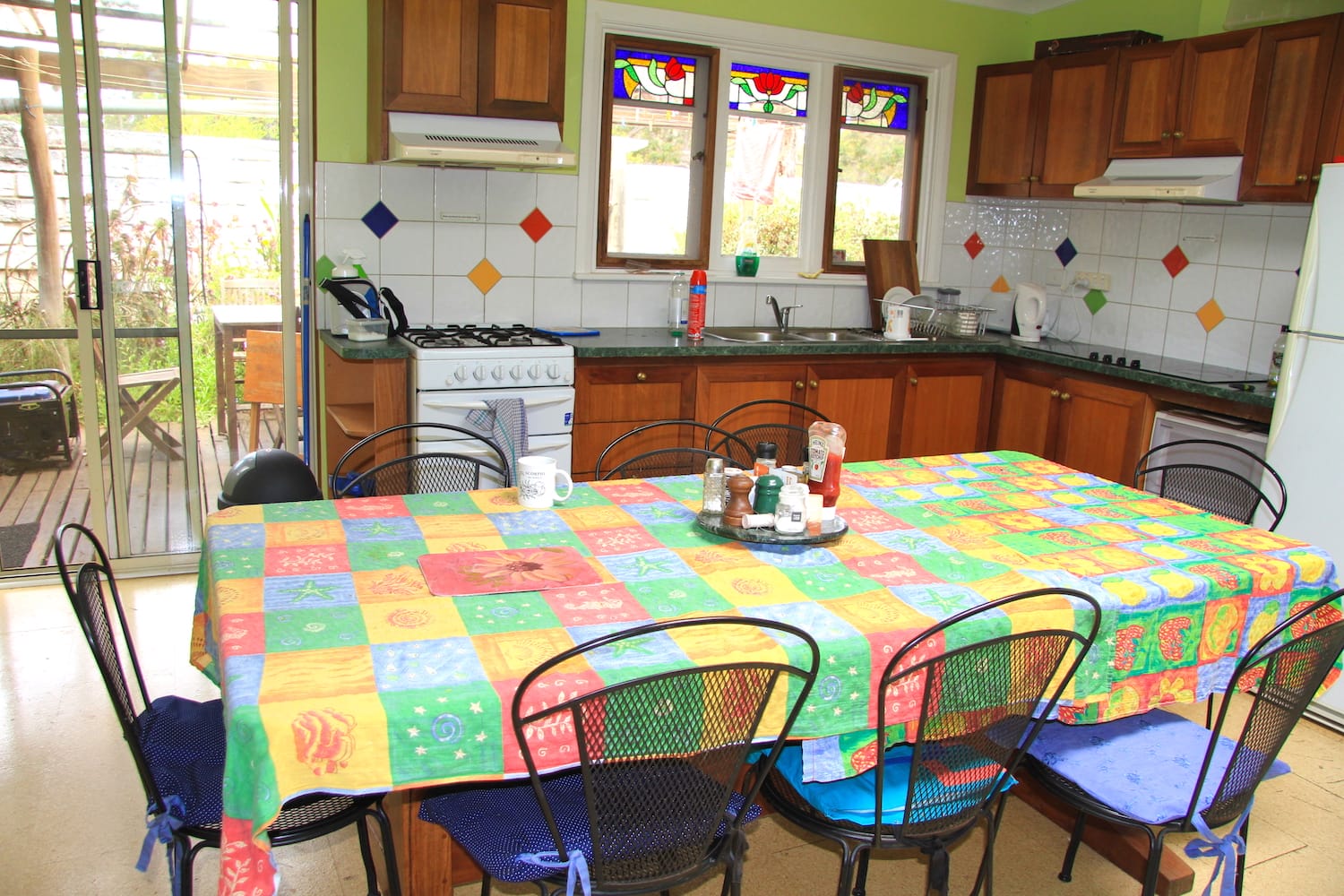 Choose from 5 rooms containing either queen, double or twin single. Shared kitchen, laundry, bathrooms and toilets.