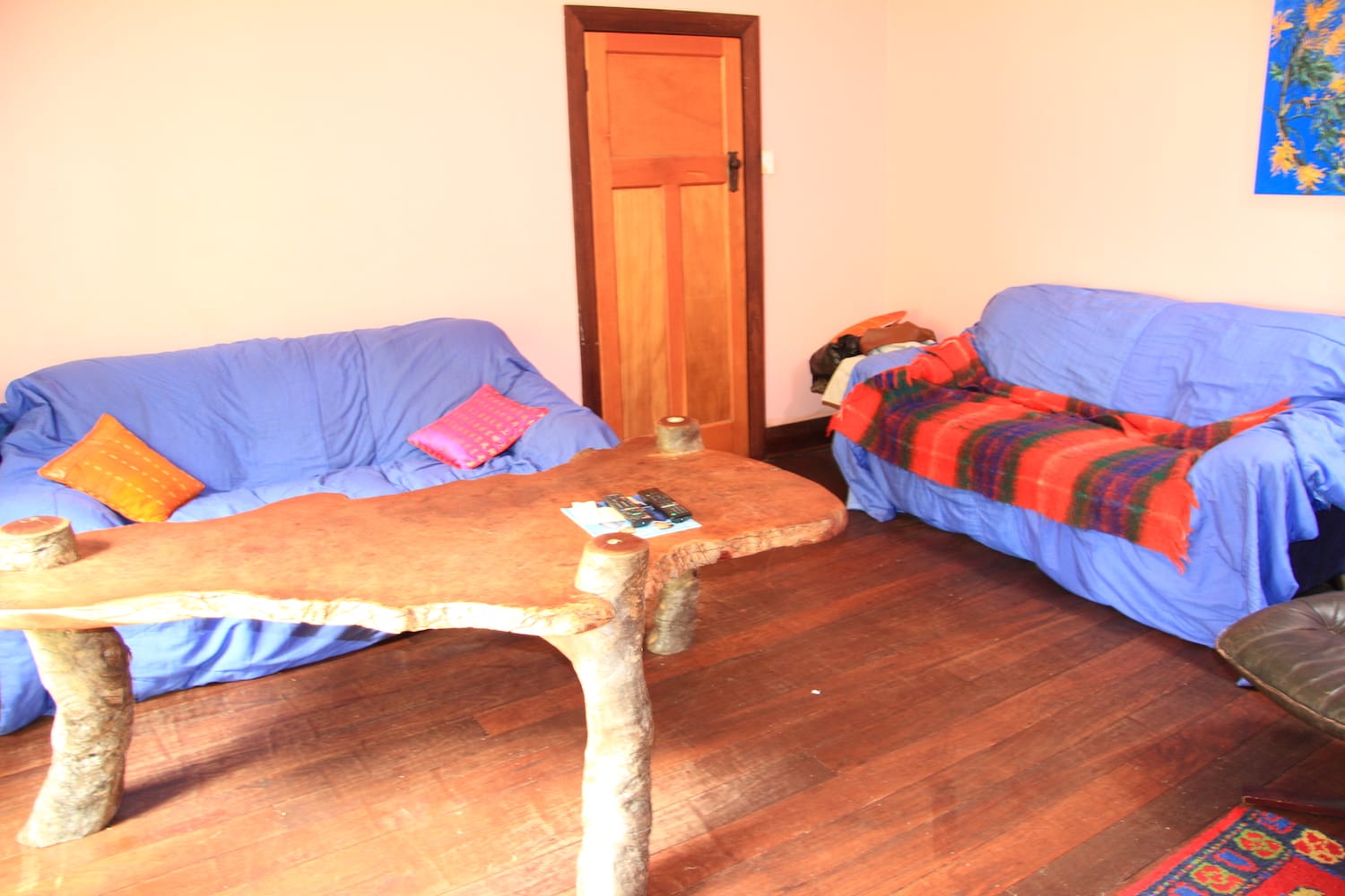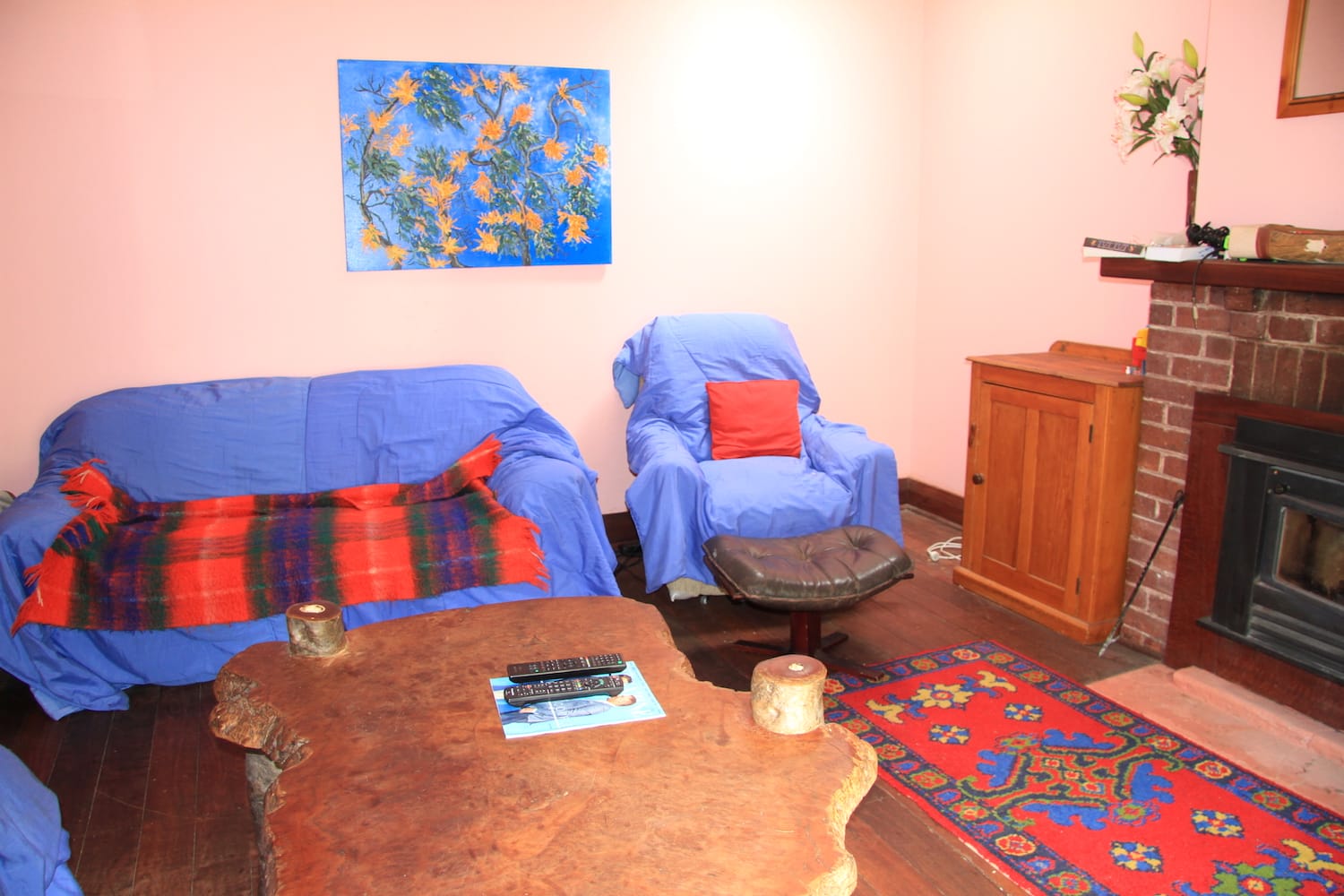 There are five private rooms with shared kitchen, laundry, bathrooms and toilets. The lounge areas are equipped with TV/DVD, wood fire, pool table, foosball, board games, books and internet access.