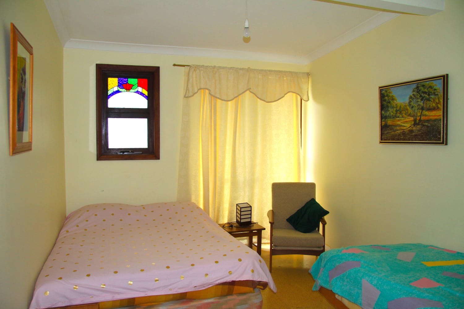Room 5 – Two Single Beds. This room is across the hallway from the Flat so ideal for kids with their parents in the Flat with Ensuite.